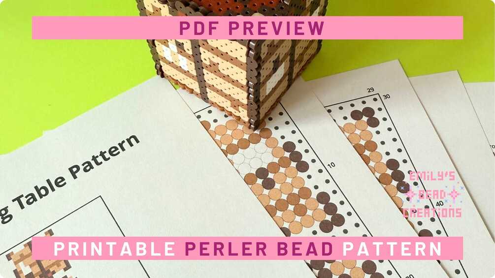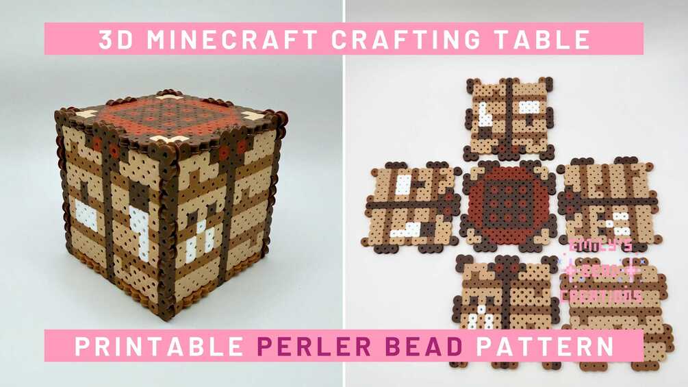 3D Minecraft Crafting Table 🔨 — Printable Perler Bead Pattern (PDF Download)