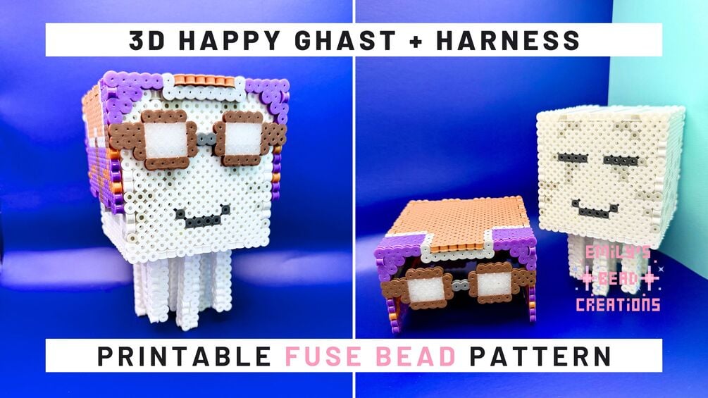 Whether you’re an experienced fuse artist looking for your next challenging 3D fuse bead project or a Minecraft fan ready to bring your favorite mob into reality, this pattern delivers both precision and creativity. The Happy Ghast’s removable harness makes it extra fun to personalize—choose purple, blue, red, or any color that fits your own Overworld adventures!