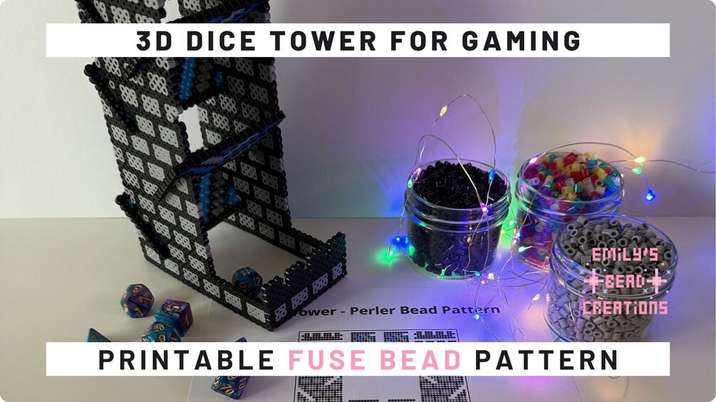 🏰 Build your own fuse bead bead Dice Tower with this printable pattern! This nifty castle tower has ramps so your dice roll all the way down. Get ready to meet your favorite game night accessory!