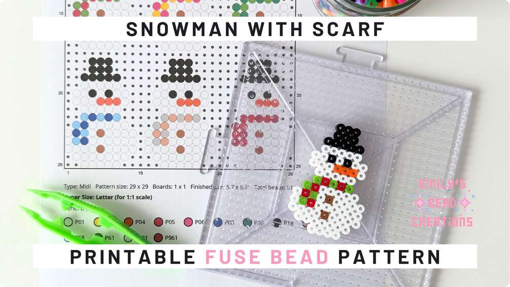 [FREE] Snowmen with Scarves - Fuse Bead Pattern Printable (Digital Download)